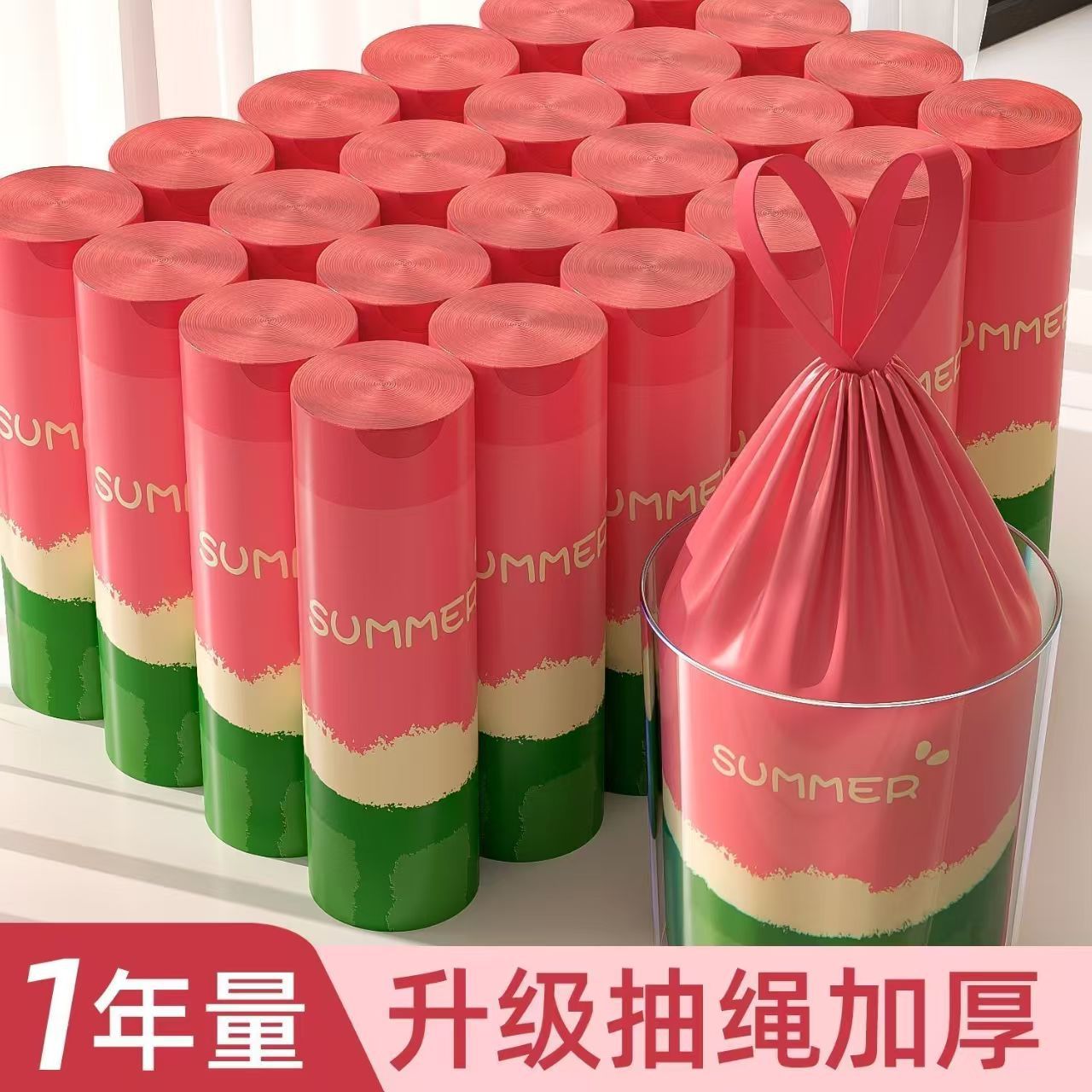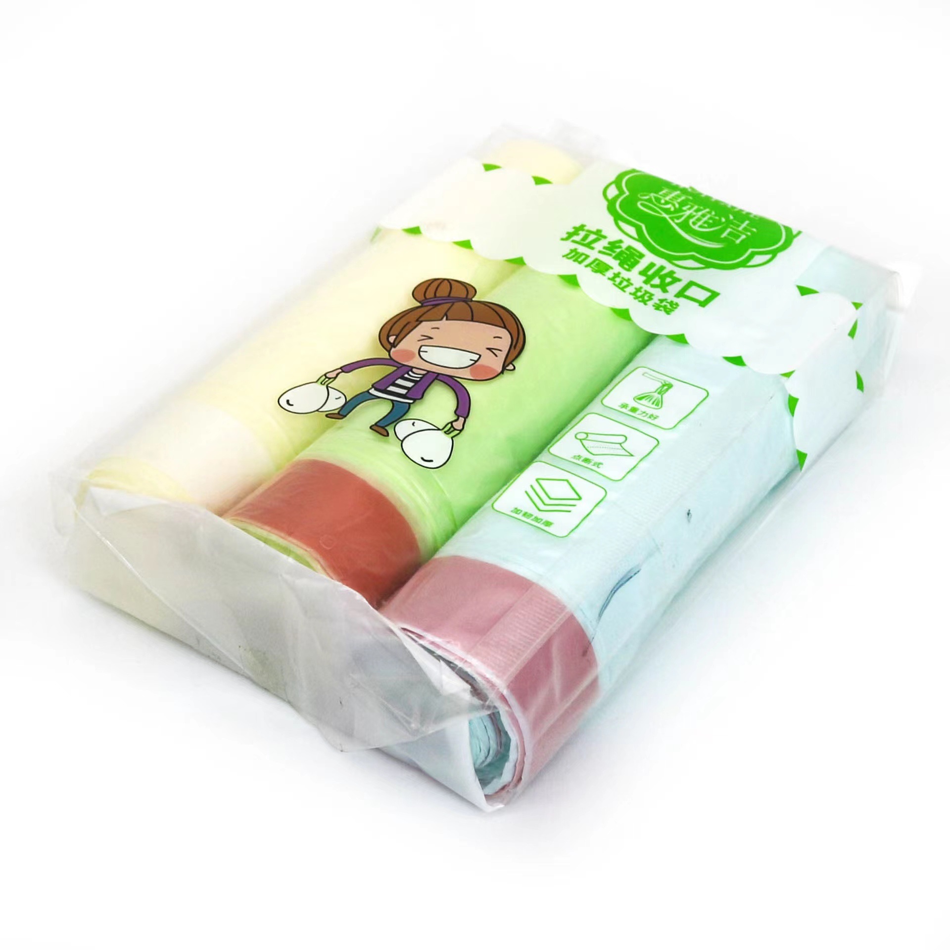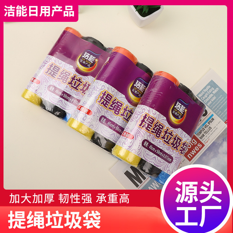ロープゴミ袋を厚くして家庭用オフィスのカラーポータブル使い捨てビニール袋にロープゴミ袋を通す