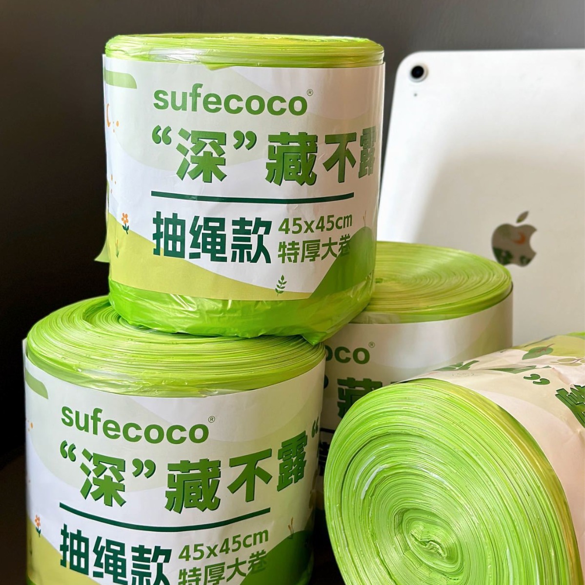sufecoco 隠された巾着ゴミ袋家庭用特大ロールクリーニングトートバッグキッチン肥厚ゴミ袋