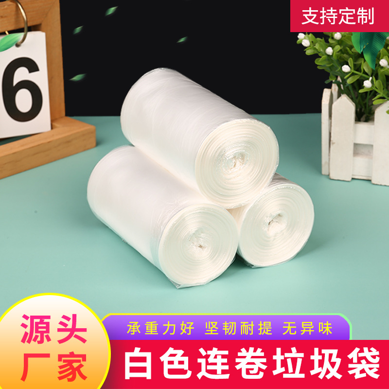 厚い平口の白い連巻ゴミ袋キッチンホテルの使い捨て点断式ゴミ袋卸売り郵便
