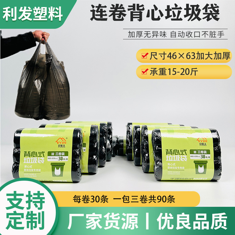 ゴミ袋ベスト式黒色厚手大型家庭用キッチン手持ち使い捨てビニール袋ベスト式ゴミ袋