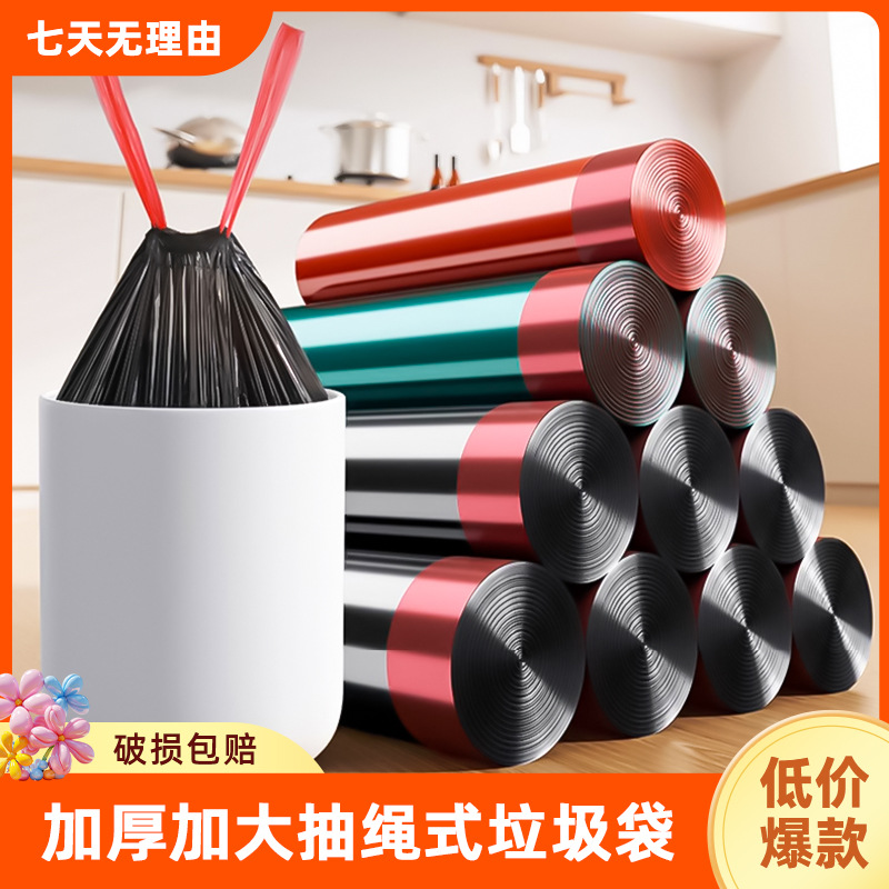 垃圾袋家用加厚手提式抽绳免撕大号厨房专用办公室学生宿舍清洁袋