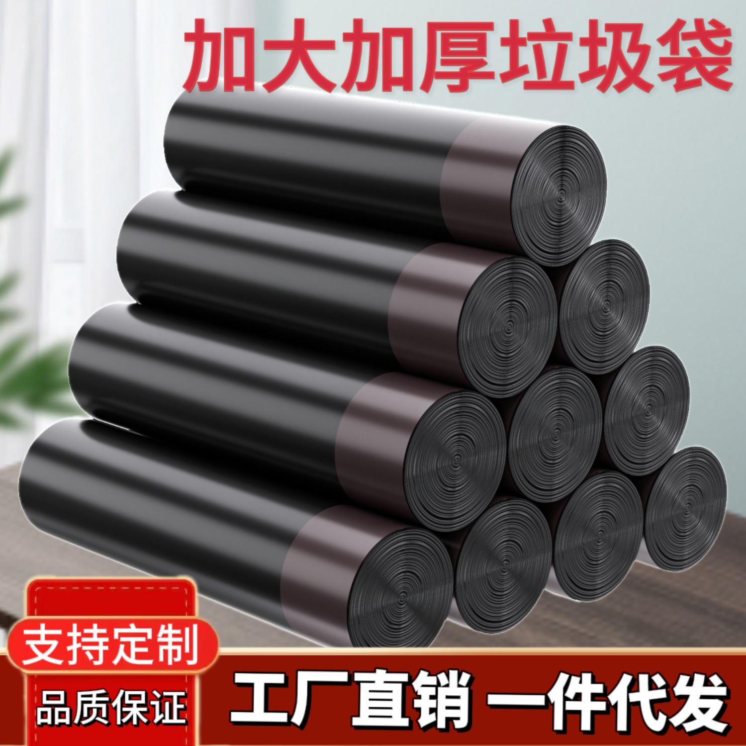 平口ゴミ袋商用黒色ビニール袋卸売り連巻点断式家庭用厚手大型便利袋代発