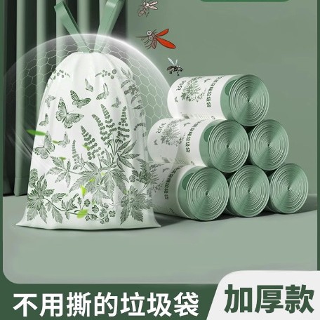 ヨモギの香りのゴミ袋 家庭用 無しわで開けられる ハンドル付き キッチン用 厚手 特厚 大型 巾着式 プラスチック袋 ゴミ袋