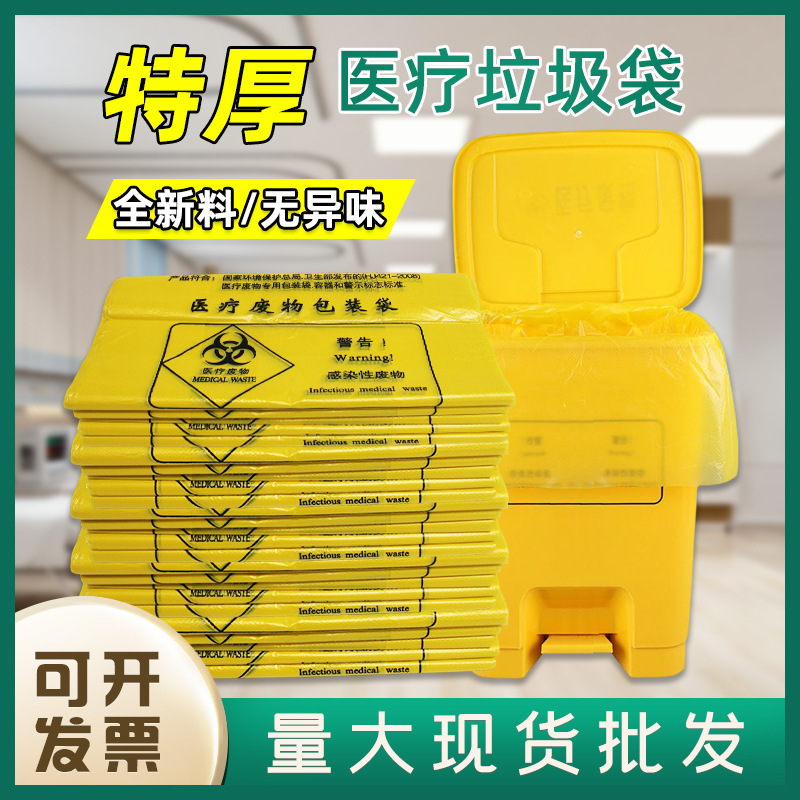 E潔黄色分解性医療廃棄物ゴミ袋平口ベスト大サイズ厚手使い捨て病院ビニール袋