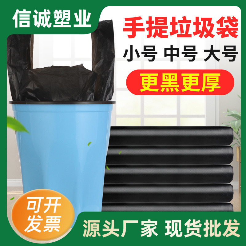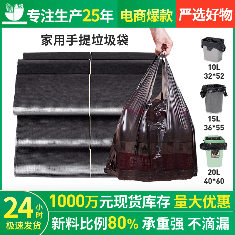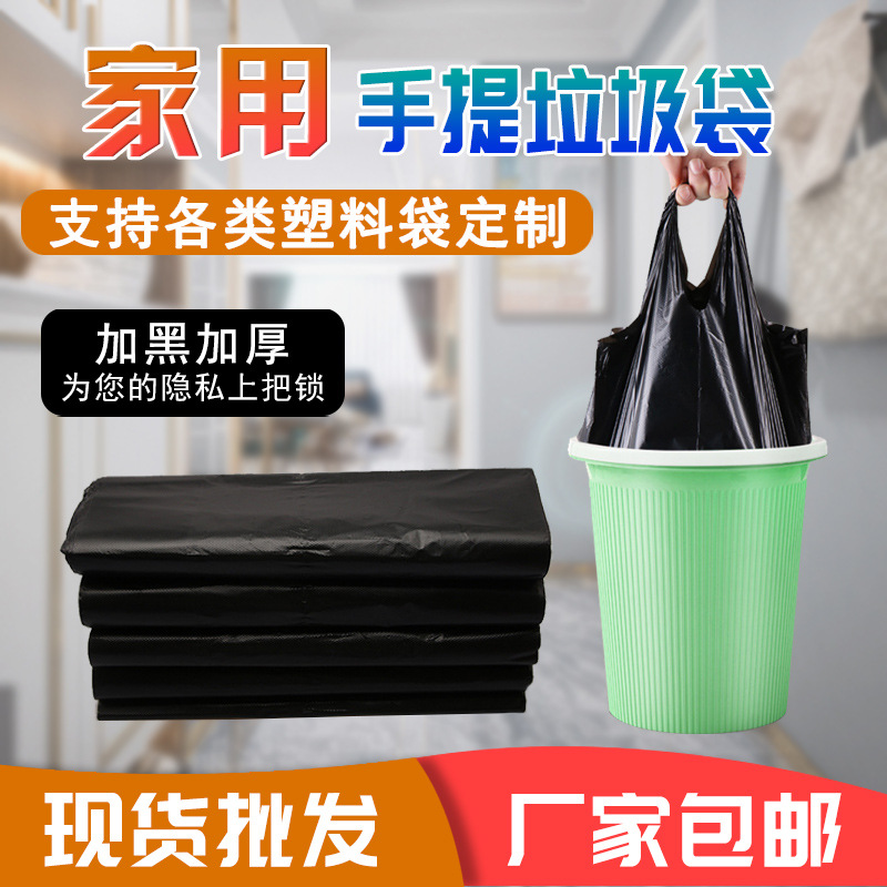 手持ち式ゴミ袋黒色家庭用厚手ベストバッグ使い捨てハンドルビニール袋メーカーロット