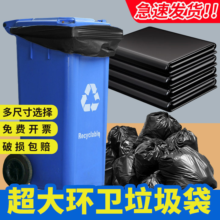 一度に厚い大型ゴミ袋黒色工業平口プラスチックゴミ袋ホテルの不動産環境保護ビニール袋