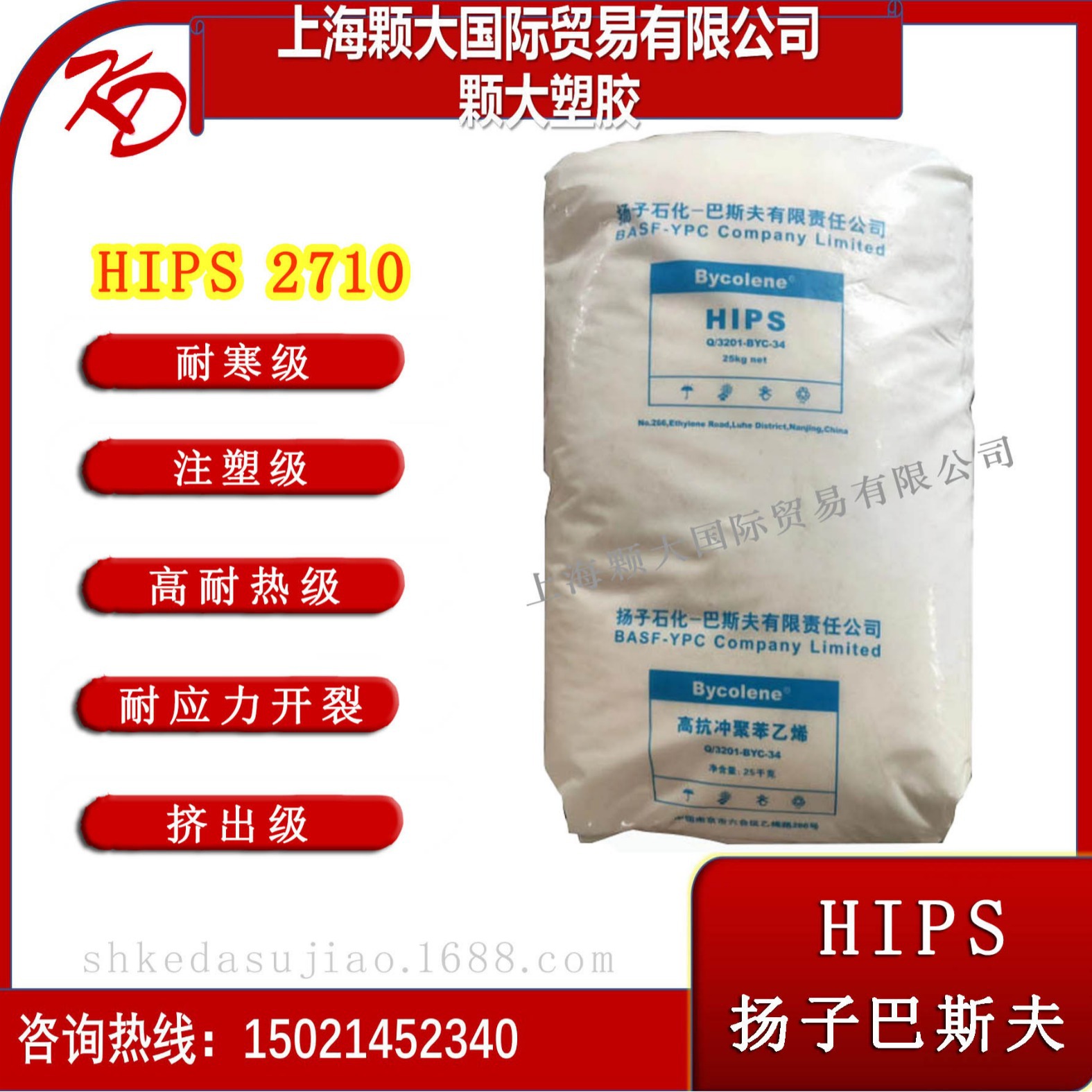 HIPS プラスチック Yangtze BASF 476L 低温耐性、高衝撃性、高流動性シート家電製品アプリケーション