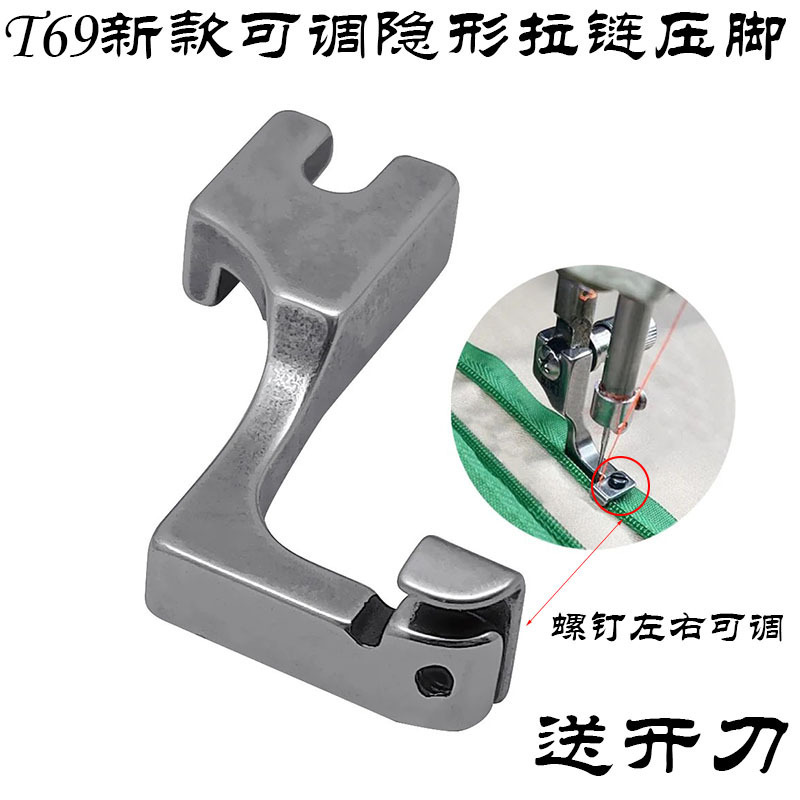 ユニバーサル新しい T69 調整可能な目に見えないジッパー押え金フルスチールノッチ付き片面押え金コンピュータ平縫いミシン用