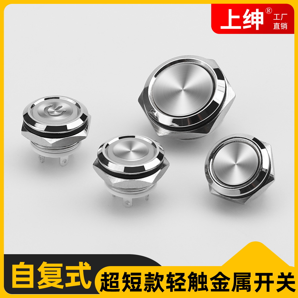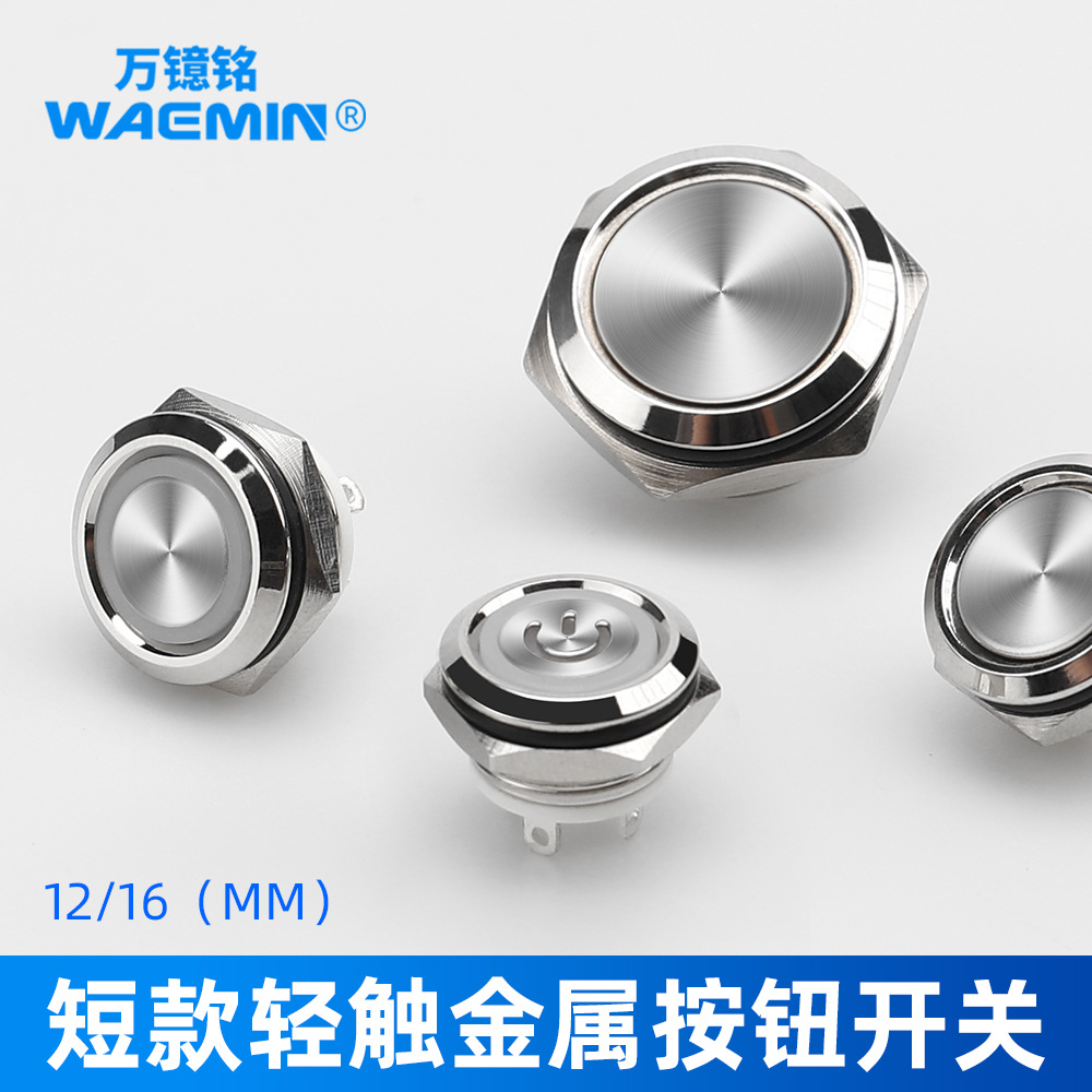 12/16mm超短タッチ金属ボタンランプ付き自己リセット防水超薄点動マイクロストローク電源スイッチ