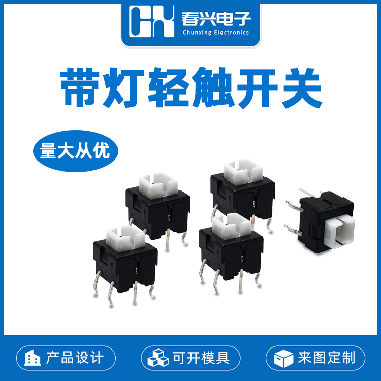 8x8ライト付きタッチスイッチTS-LS-001B直挿し6足ledライト付きボタンリセットボタンスイッチ