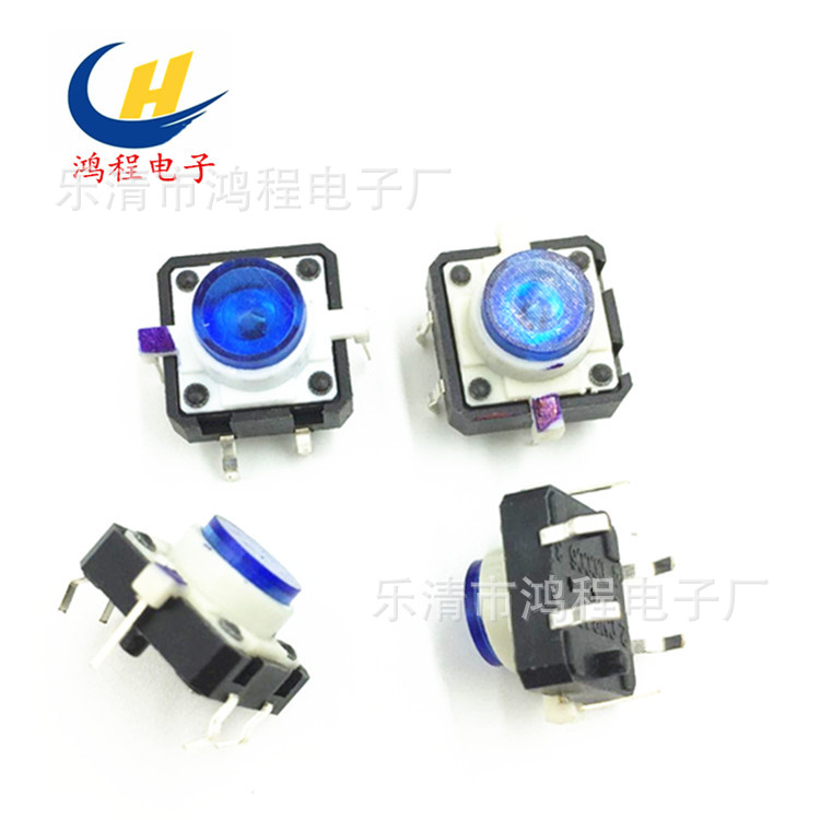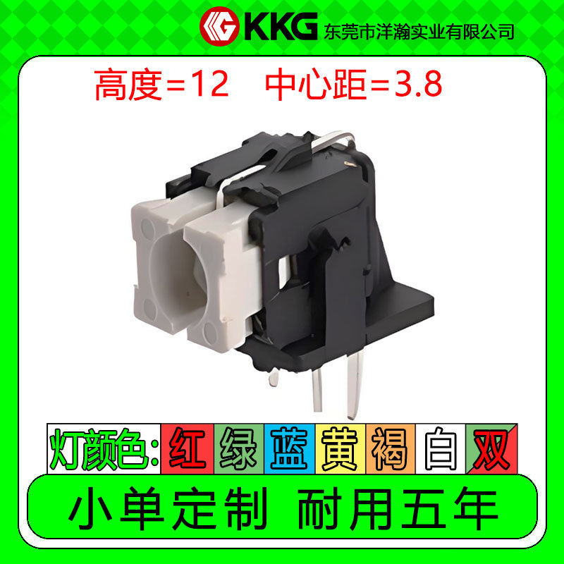 高さ12mm中心距離3.8ライト付きスイッチタッチ側押しプラグインボタン赤黄青緑白単/2色