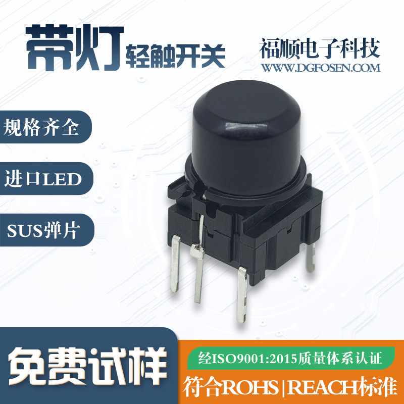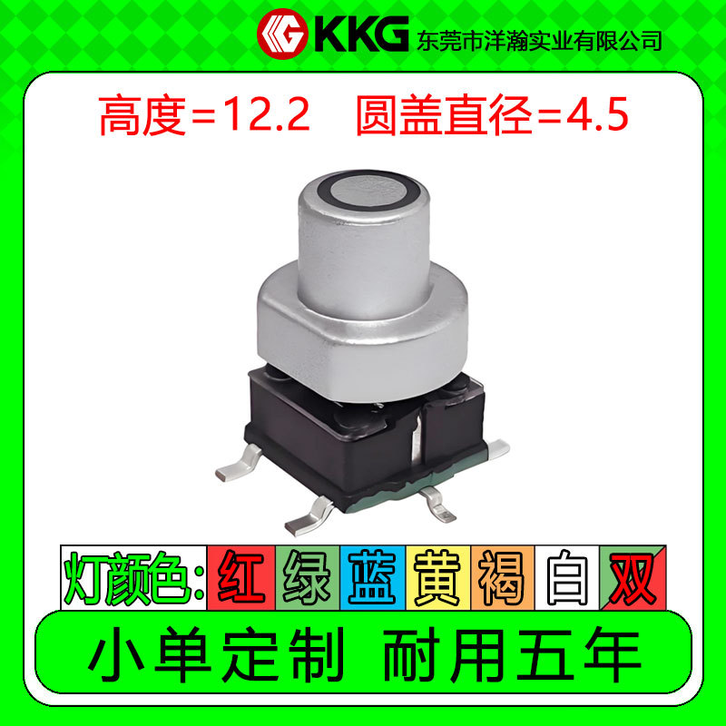 高さ15直径12ライト付きスイッチタッチ直挿常開ボタンボタン赤黄青緑白単/2色