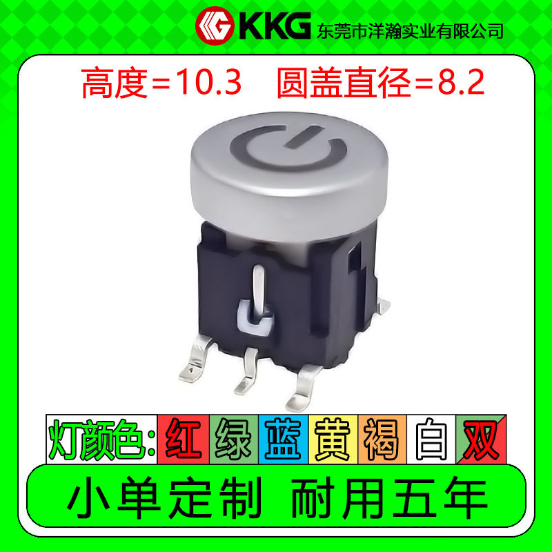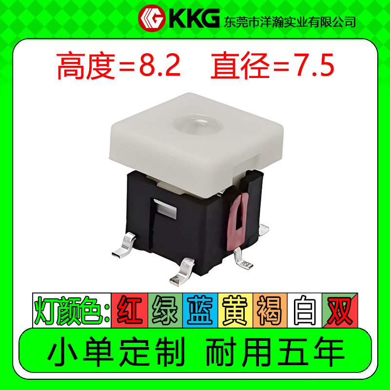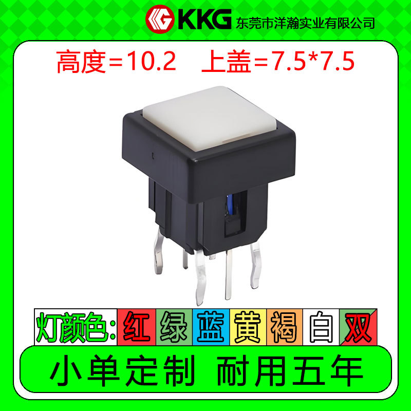 高さ10.2上蓋7.5*7.5ランプスイッチ付きタッチストレートボタン赤黄青緑白単/2色