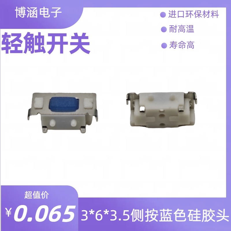 タッチスイッチ3*6*3.5側押し青色シリコンヘッド環境保護耐温材質高寿命