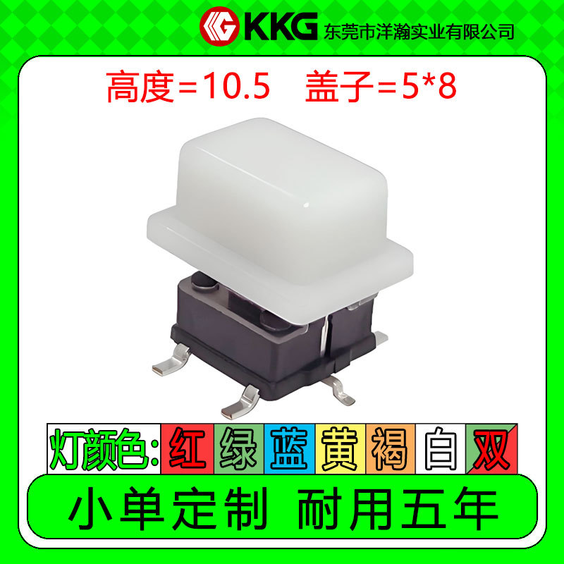 高さ10.5蓋5*8ライトスイッチ付きタッチストレートボタン赤黄青緑白単/2色