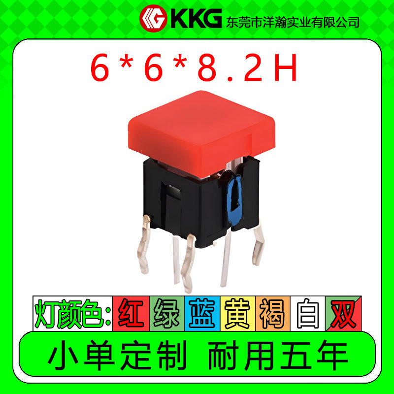 6*6 * 8.2Hライト付きスイッチタッチ直挿常開リセットボタンLEDボタン赤黄青緑白単/二色