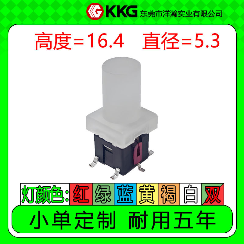 6*6 * 16.4H直径5.3ライト付きスイッチタッチ直挿常開ボタンボタン赤黄青緑白単二色