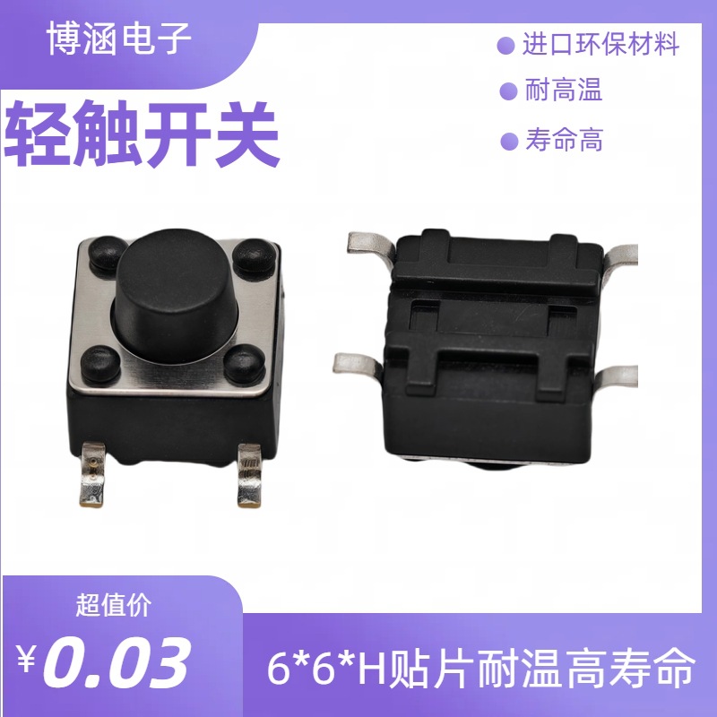 環境保護タッチスイッチボタンスイッチ4足パッチ耐温6*6*4.3-20mm縦型小型微動