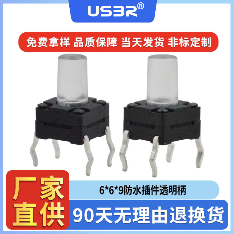 環境保護高寿命タッチスイッチ6*6*9高防水プラグイン260G透明ハンドル四脚プラグインボタンスイッチ