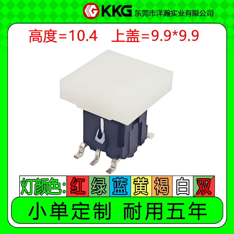 高さ9mm上蓋4.6*5.8ランプスイッチ付きタッチパッチボタン赤黄青緑白単/2色