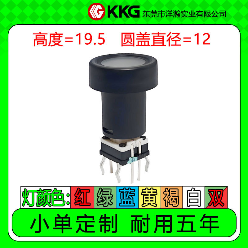 高さ19.5直径12ライト付きスイッチタッチ直挿常開ボタンボタン赤黄青緑白単/2色