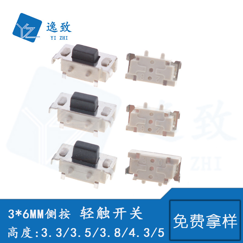 タッチスイッチ3*6*3.3/3.5/3.8/4.3/5mm側押しスイッチ二脚柱付きパッチボタンスイッチ