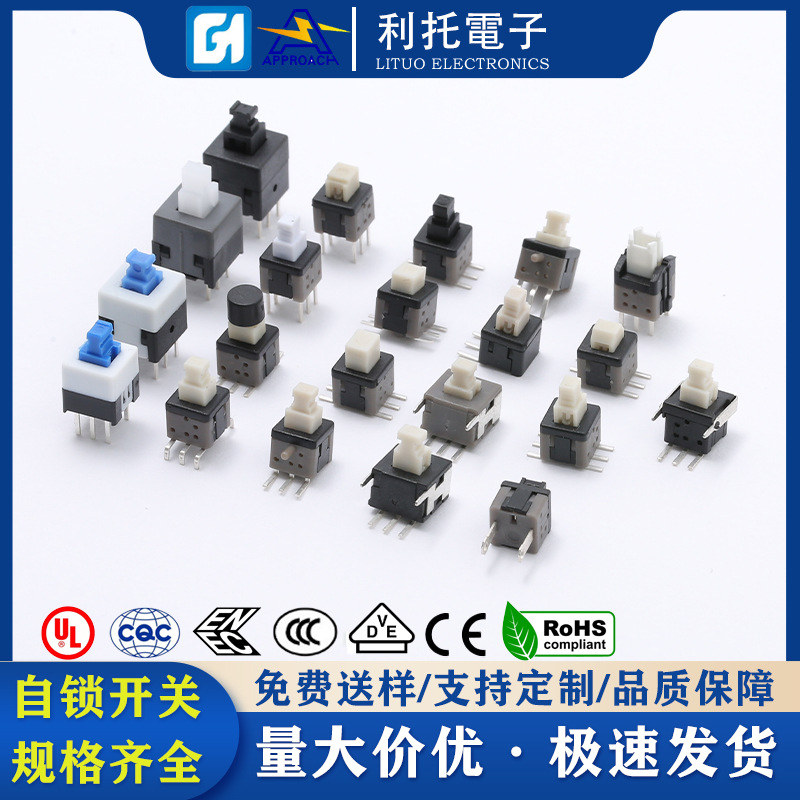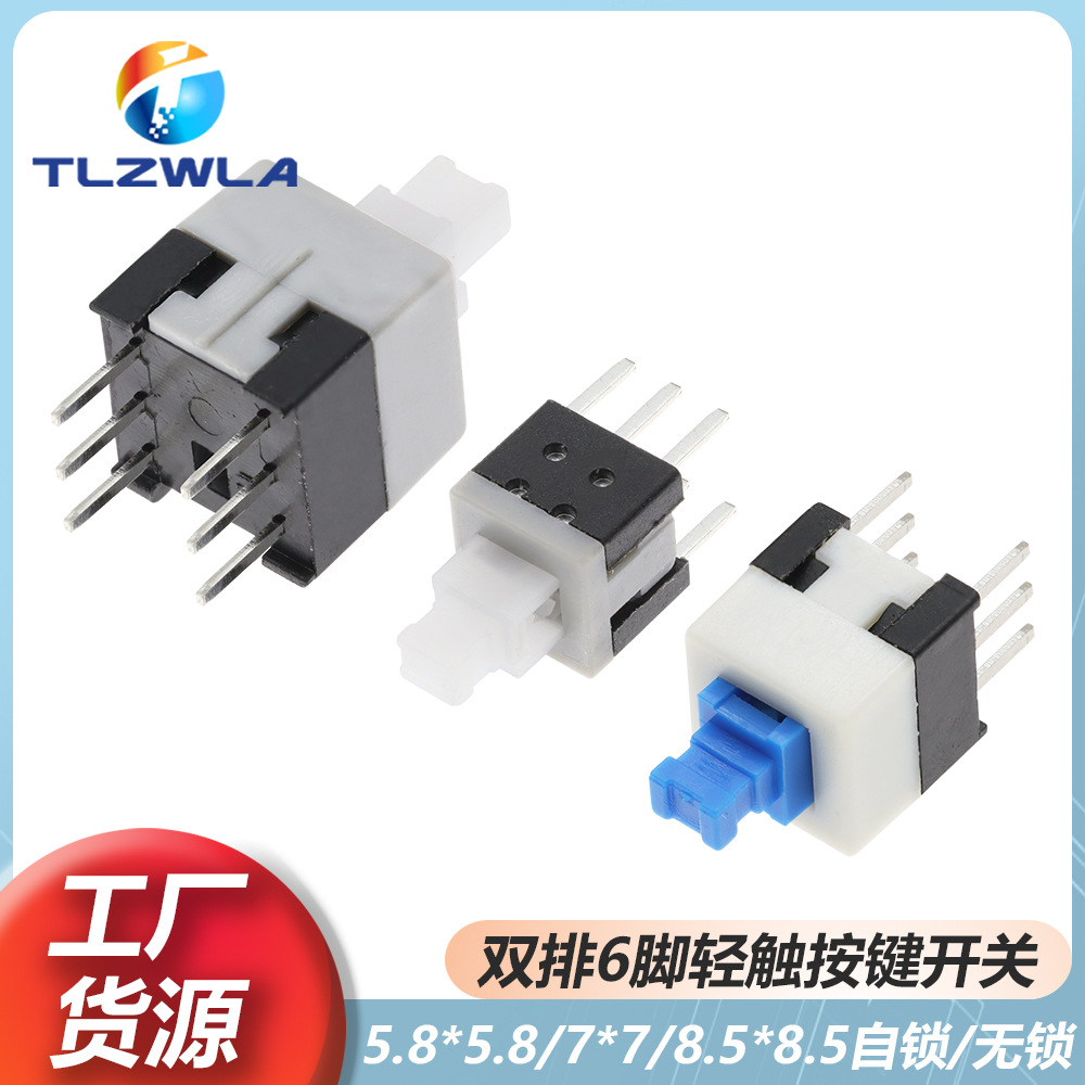 7*7セルフロックスイッチ5.8*5.8*88.5 * 8.5mmボタン玩具セルフリセット単二列6脚
