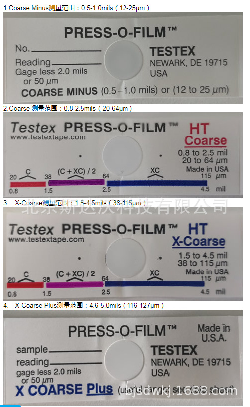 現物供給testex粗さテスト紙press-o-film粗さテストセット