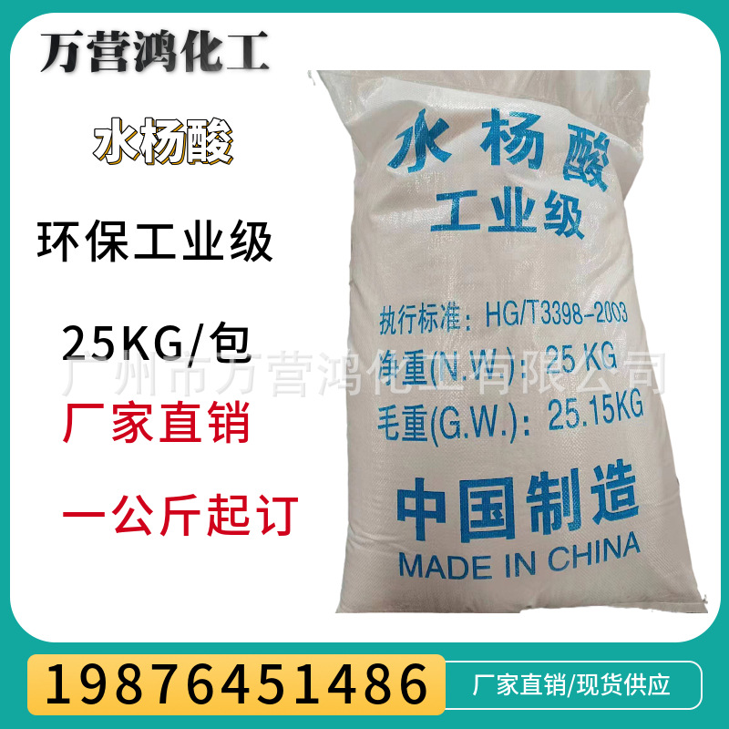 工業用サリチル酸o-ヒドロキシ安息香酸サリチル酸の正味量25KG/袋を供給します。