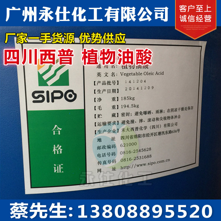 四川省西普オレイン酸植物オレイン酸十八炭素オレイン酸可塑化離型潤滑剤脱脂洗浄乳化剤