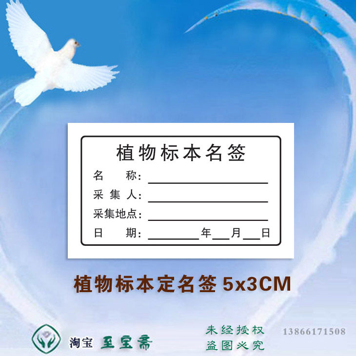 乾燥しない植物の標本の名前は5x3cm動物のラベルの台紙を採取して記録を記録します。