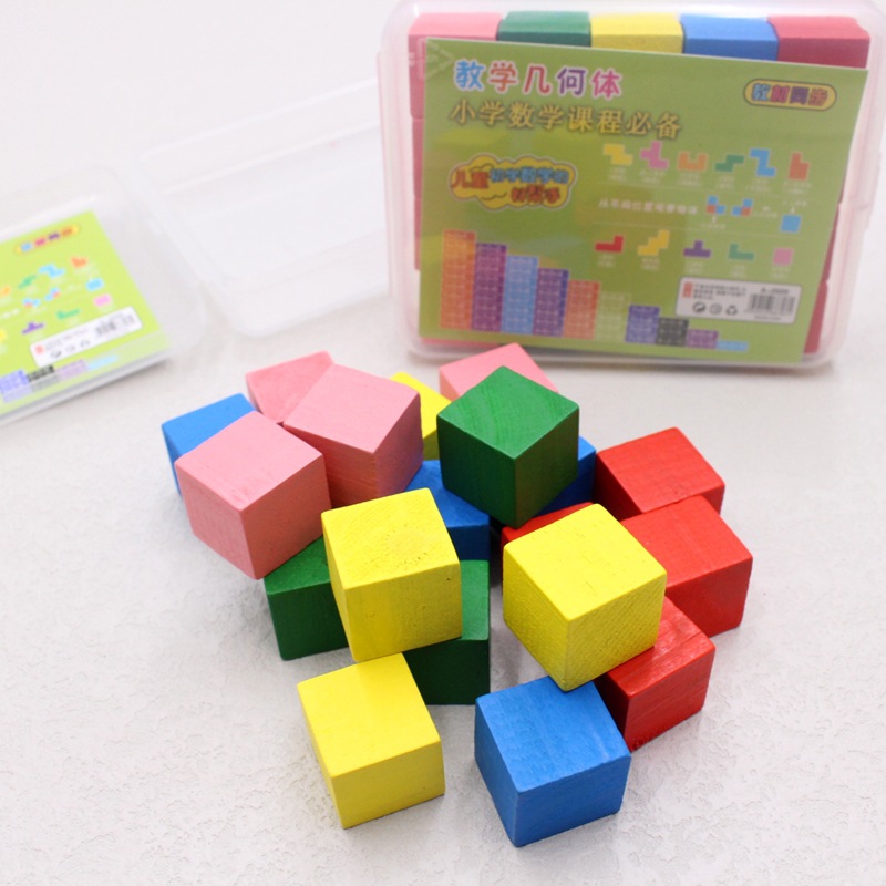 好彩メーカーは20粒の箱の正方形の立方体の辺の長さの2cmの子供の積み木の幾何学の教具を卸売りします。