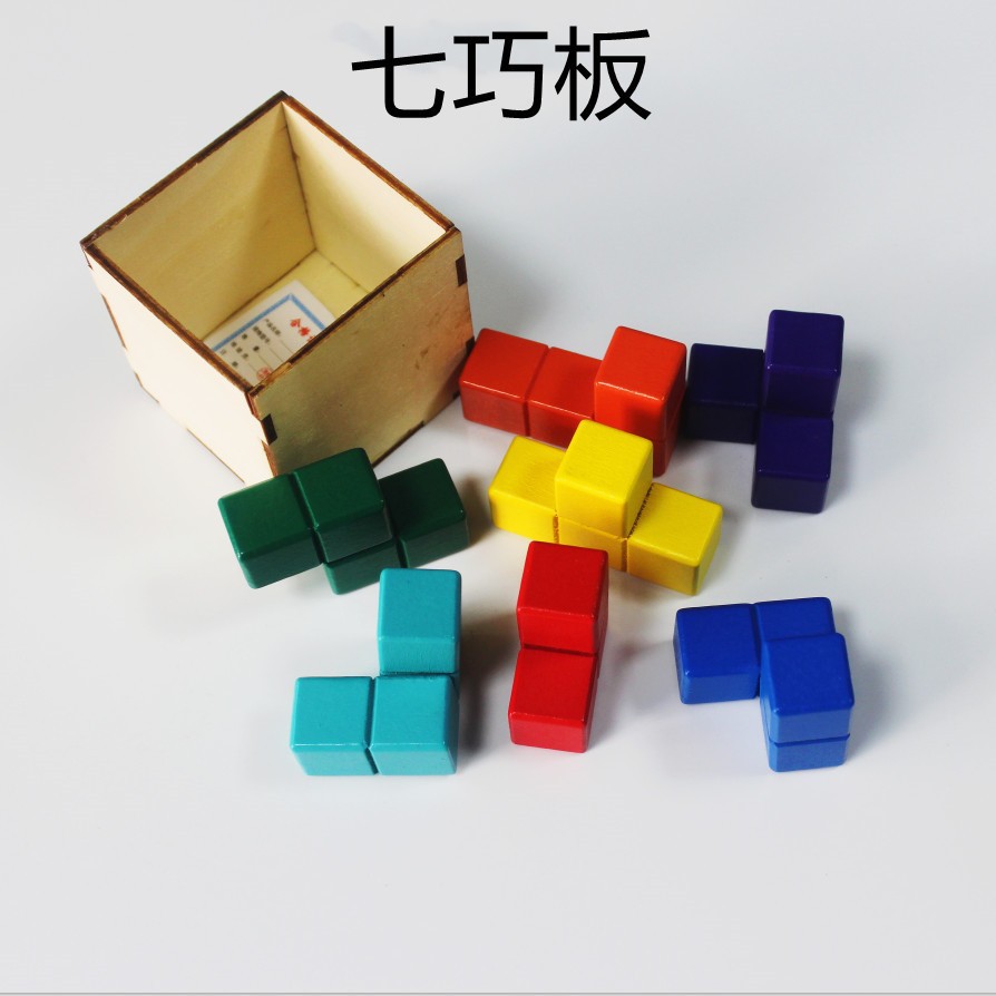 七巧板カラー木質J20530知能益智積み木盛り合わせ版小学校数学科学実験器材