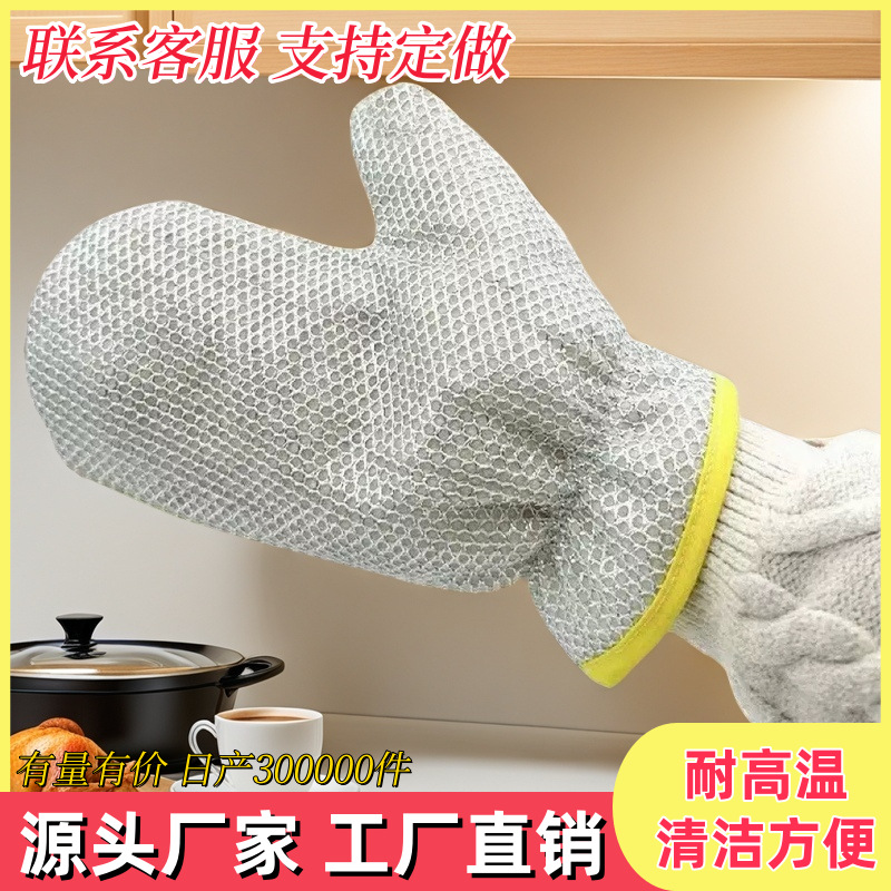 ワイヤー洗浄手袋台所の家事清潔で耐久性のある防水ブラシボウル非ワイヤーボール熱防止断熱ブラシ鍋手袋