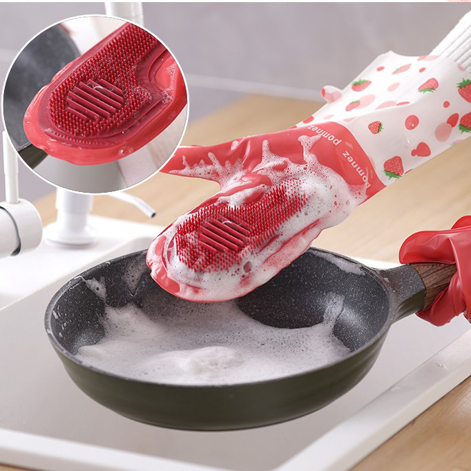 家庭用皿洗い服洗濯薄い耐久性手袋女性ブラシキッチンボウルゴム家事ゴム手袋