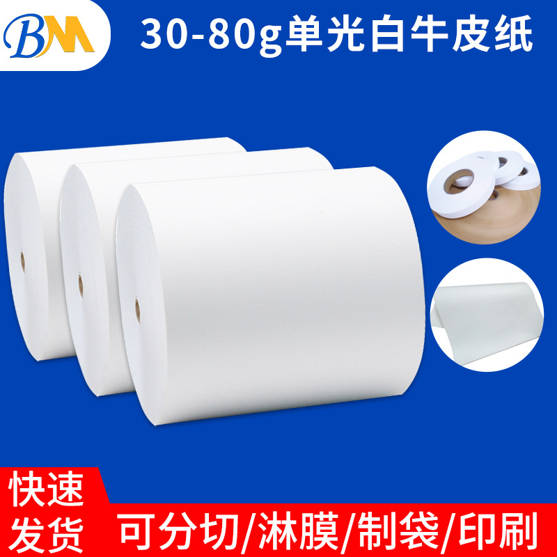 30-80グラム食品級白クラフト紙全木オール無蛍光単光白牛革紙ロール紙包装紙