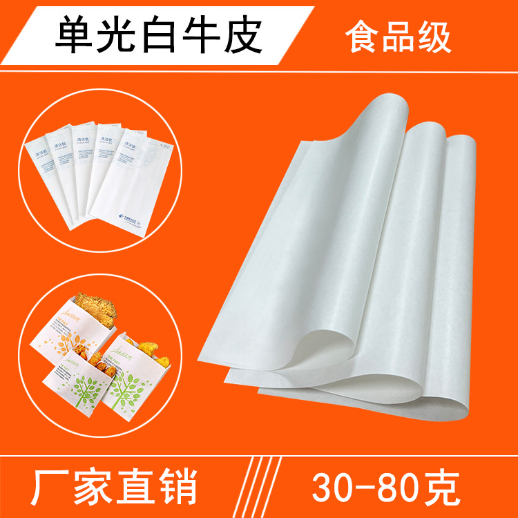 食品グレードの単光沢白牛革紙、全木パルプ単光沢白牛革紙、食品袋専用をメーカーが供給しています