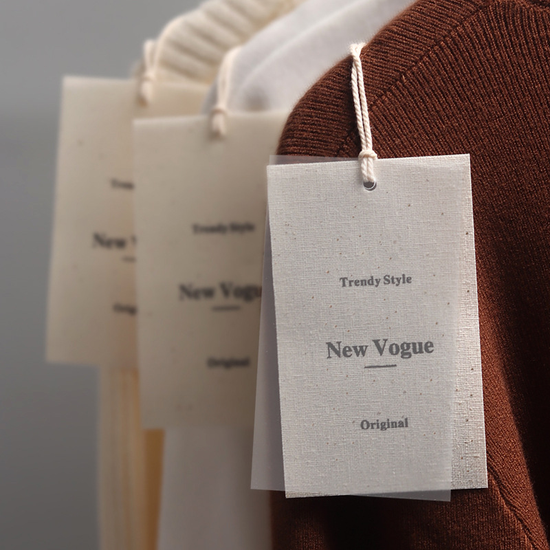 カスタム高級タグロゴ、衣料品店向け特注カード、婦人服、高級感のあるキャンバスカード、トレンドブランド