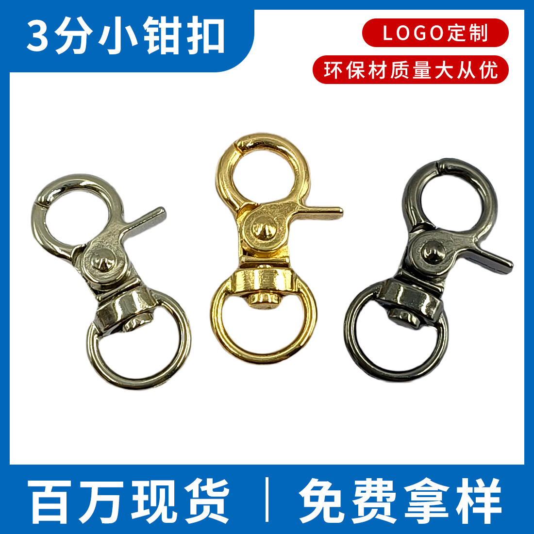 在庫あり 3分メッキ電着ブラック小型クランプバックル 開閉式バッグ用ミニカニバックル 亜鉛合金キーホルダー ラウンドテールドッグバックル