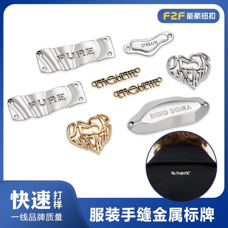 衣類、バッグ、アクセサリー、荷物、金属看板、カスタム中空ハードウェアロゴ文字商標亜鉛合金看板