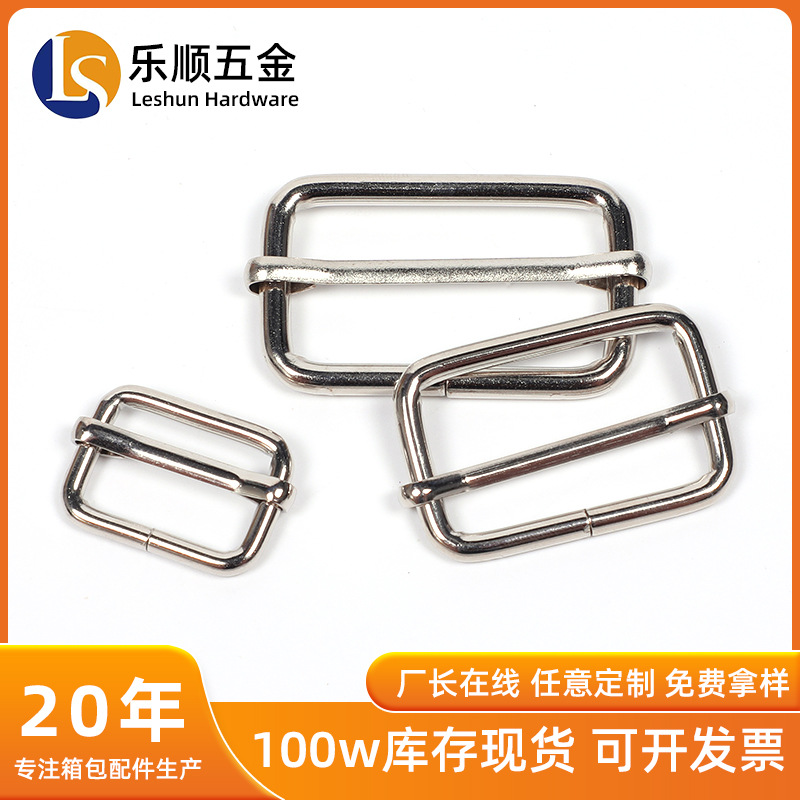 金属製デイリーバックル、衣類ベルト、ショルダーストラップ、3段階調整バックル、荷物金具、シルバースクエアプルバックル