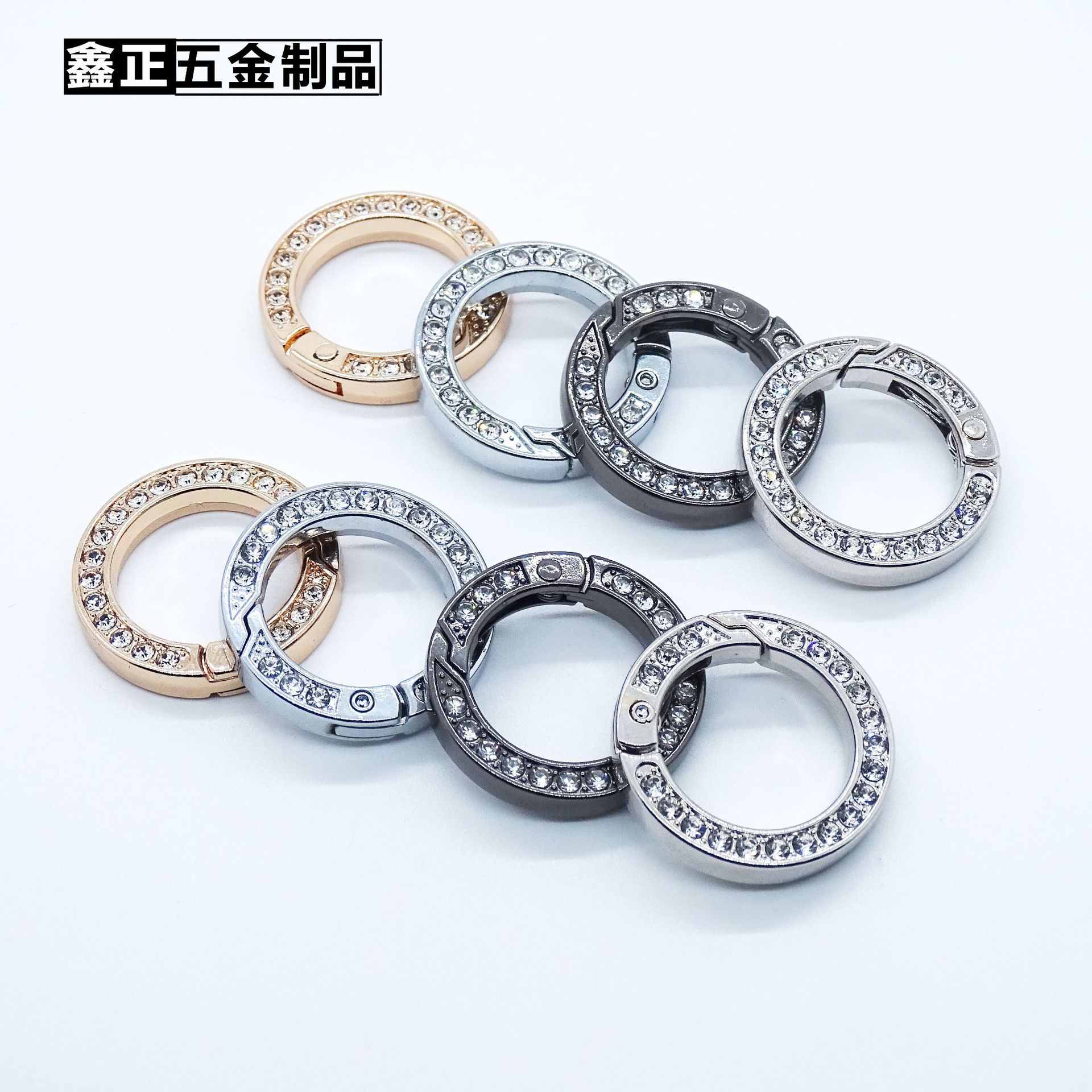 亜鉛合金ドリル付きスプリングバックル両面ダイヤモンドスプリングリングdiyアクセサリーキーホルダー