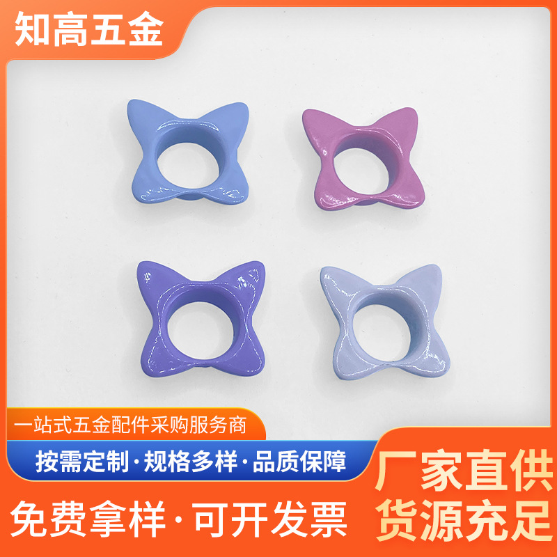 メーカーは蝶の形をしたアイレットバックル、カラフルな衣類、バッグ、アクセサリーボタン、金属製のカラフルなスプレー塗装アイレットバックルを供給しています。