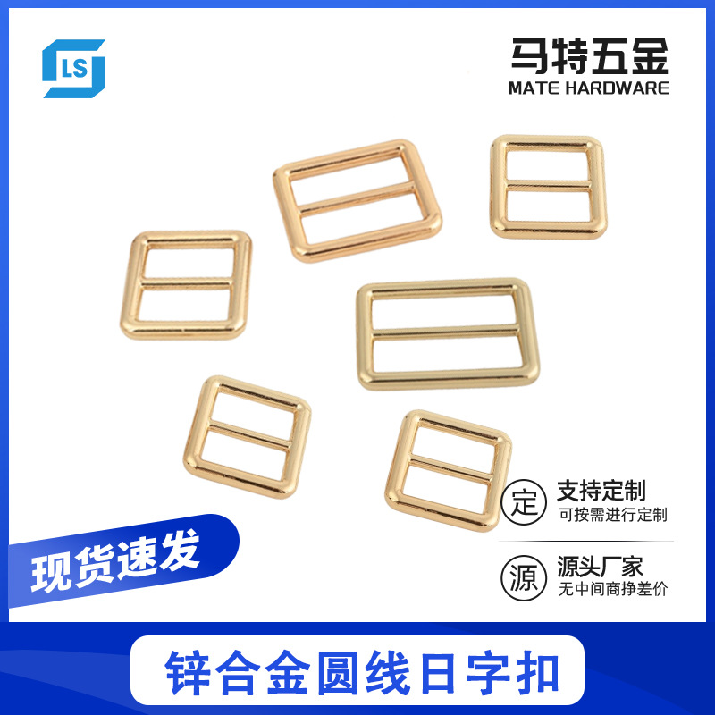 箱包金具 ダイカスト丸線日字バックル 浅金色亜鉛合金箱包付属品 ショルダーストラップ調整バックル