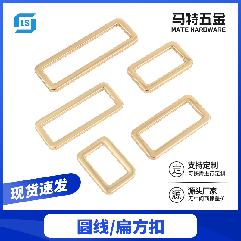 メーカー在庫あり亜鉛合金ダイカストフラットスクエアバックル、ラウンドラインスクエアバックル、荷物用金具、ライトゴールドメンズバッグ用金具アクセサリー