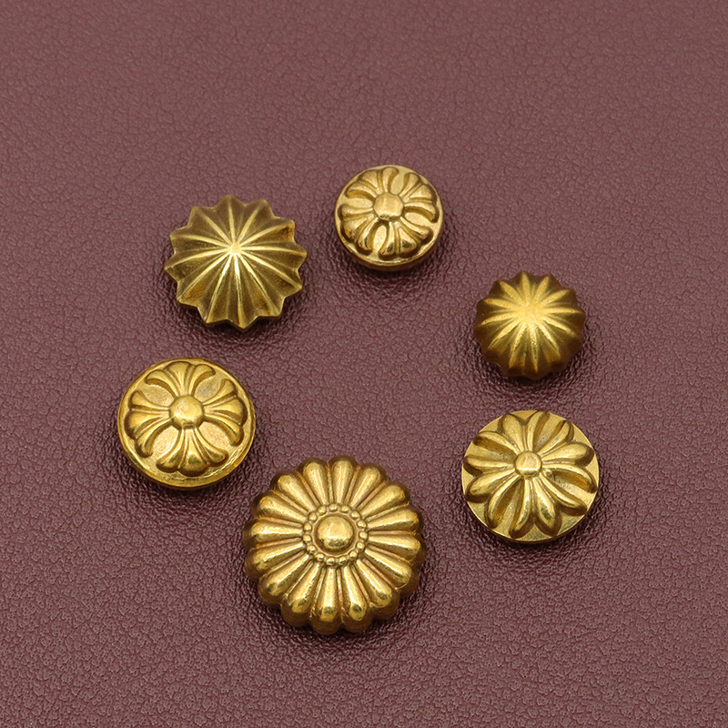 菊の金の布のボタンの全中実の真鍮の材質のdiyの手作業の皮革の装飾のボタンの復古の高橋の克心の風格