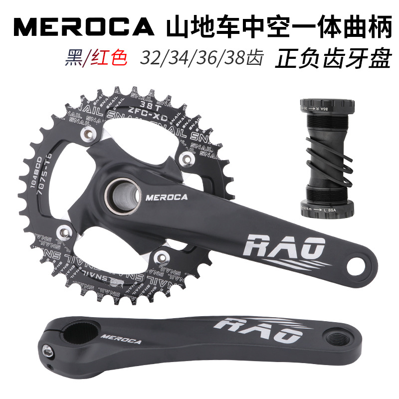 Merocaクランクマウンテンバイク歯皿中空一体クランク中軸改装単皿32t 34 36 38歯