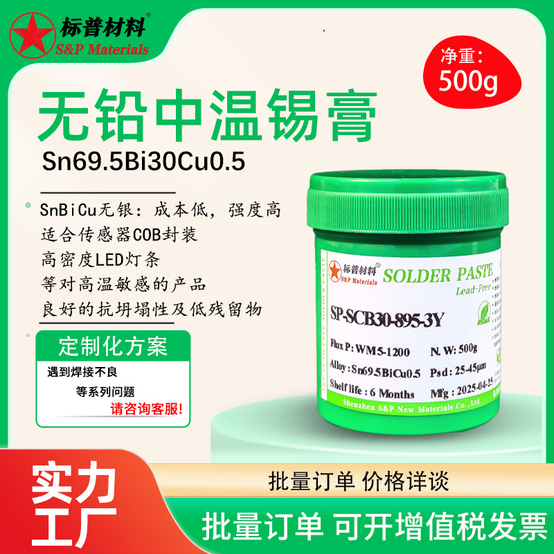 鉛フリー中温はんだペースト 高密度LEDストリップ 高温耐性のない部品 特殊無洗浄はんだペースト はんだペースト