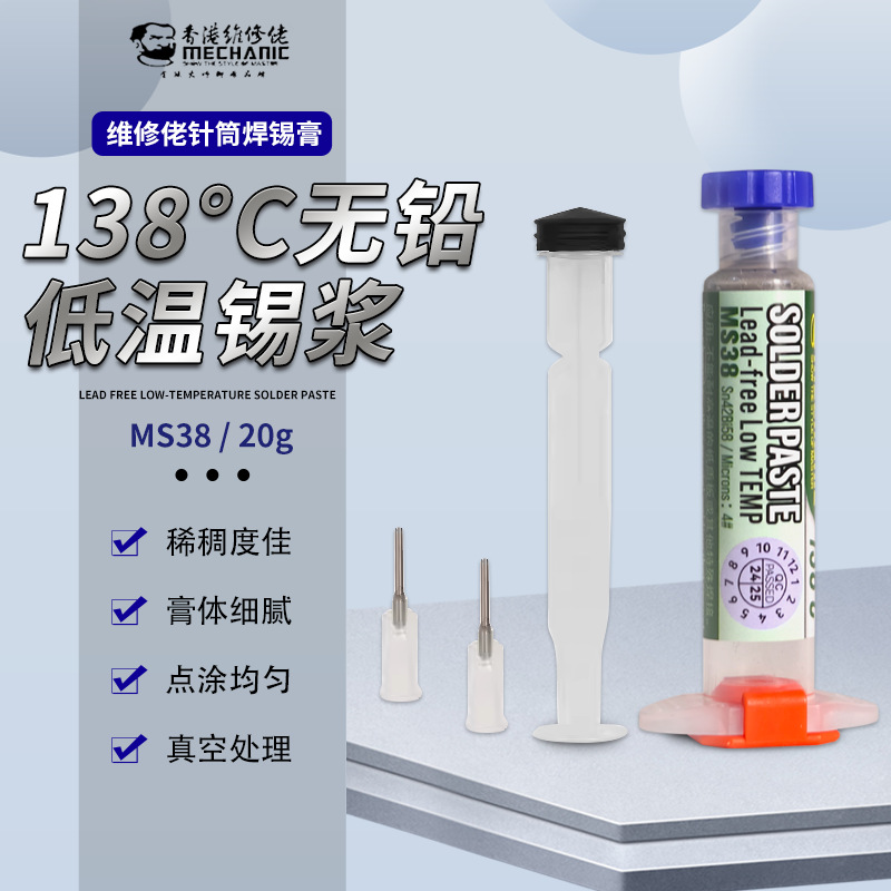 修理人138 ℃ 鉛フリー低温錫ペーストMS38/20gメンテナンス鉛フリーはんだペースト低温錫ペーストシリンダーセット