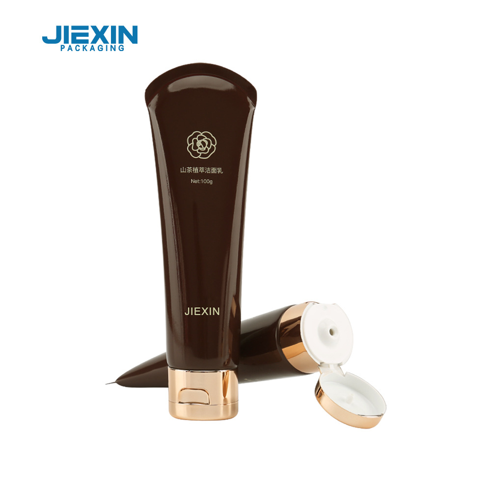 80 ミリリットル湾曲したテールローズゴールド電気メッキフリップトップブラウンソフトチューブ化粧品チューブ包装洗顔料チューブ
